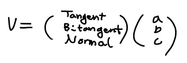 v = a * tangent-vector + b * bitangent-vector + c * normal-vector