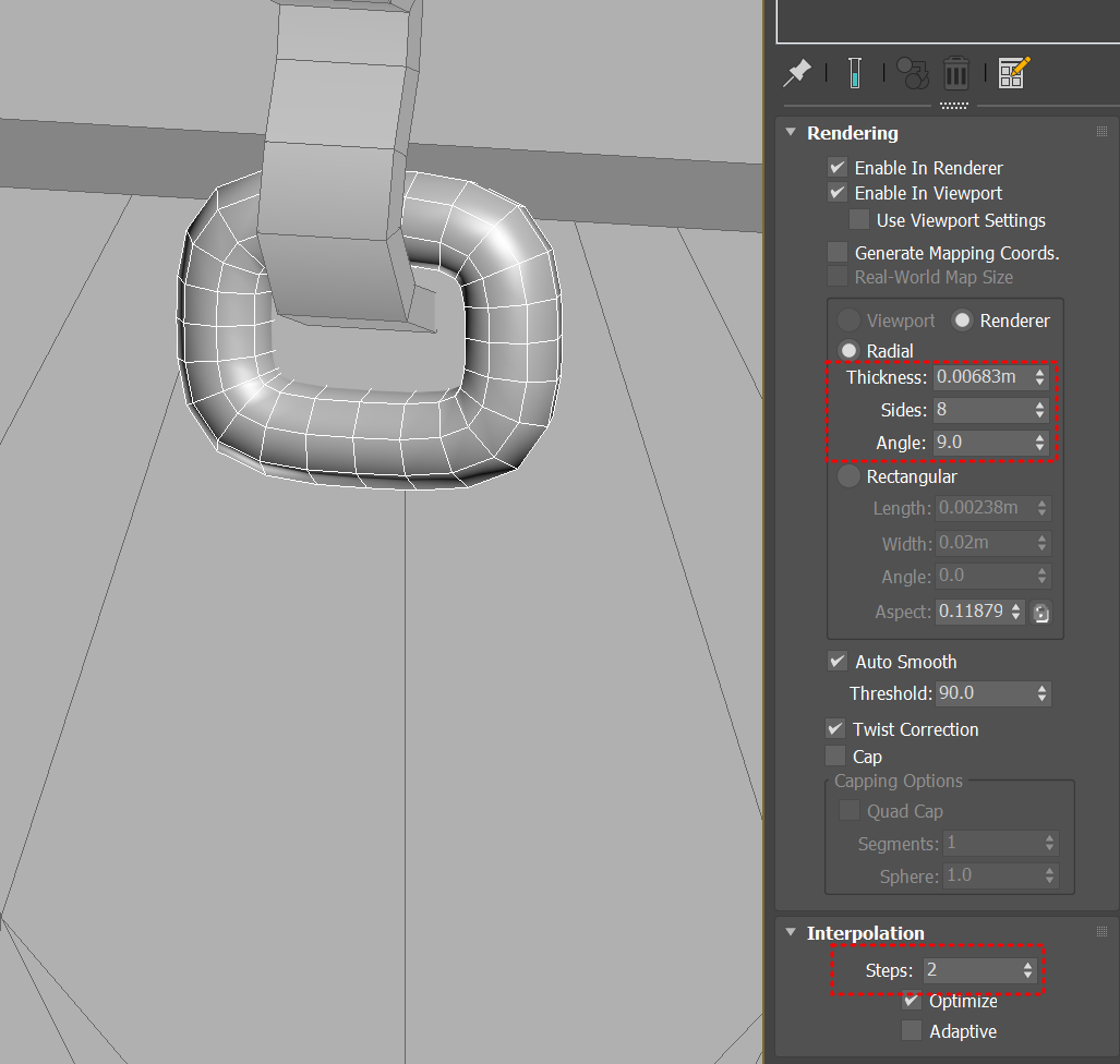 스플라인에서 옵션을 이리저리 건드려서 좀 최적화된 형태를 뽑을 수 있었다. 안에 면 얼마나 많이할건지를 Interpolation 탭에 Step 수를 조절하는 방식이었는데, 못찾아서 시간을 또 낭비했다..